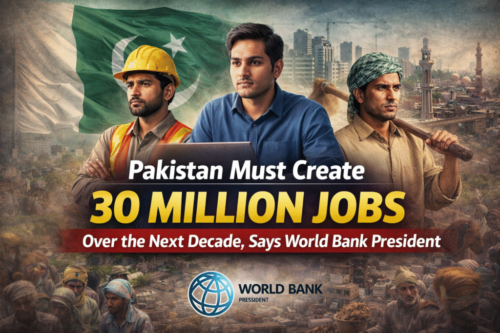 Pakistan faces a critical economic and social challenge as it must generate 30 million new jobs over the next ten years, according to the World Bank President. The warning highlights the urgency of addressing rising youth unemployment, population growth, and economic stagnation in one of South Asia’s most populous nations.